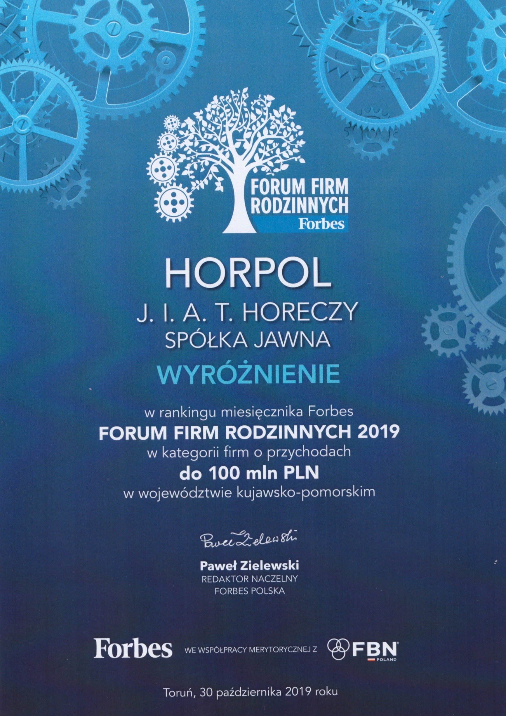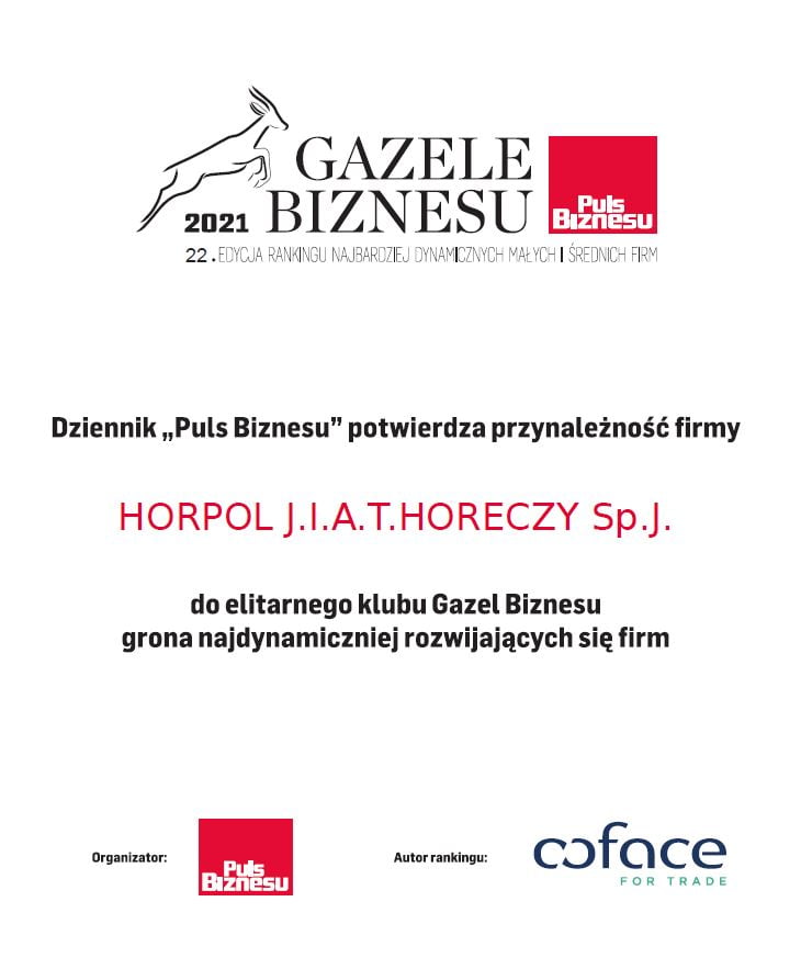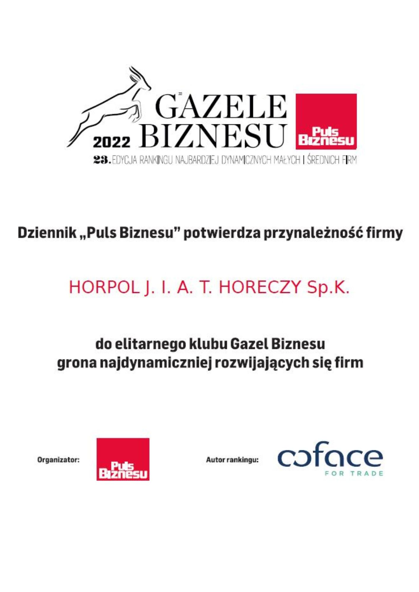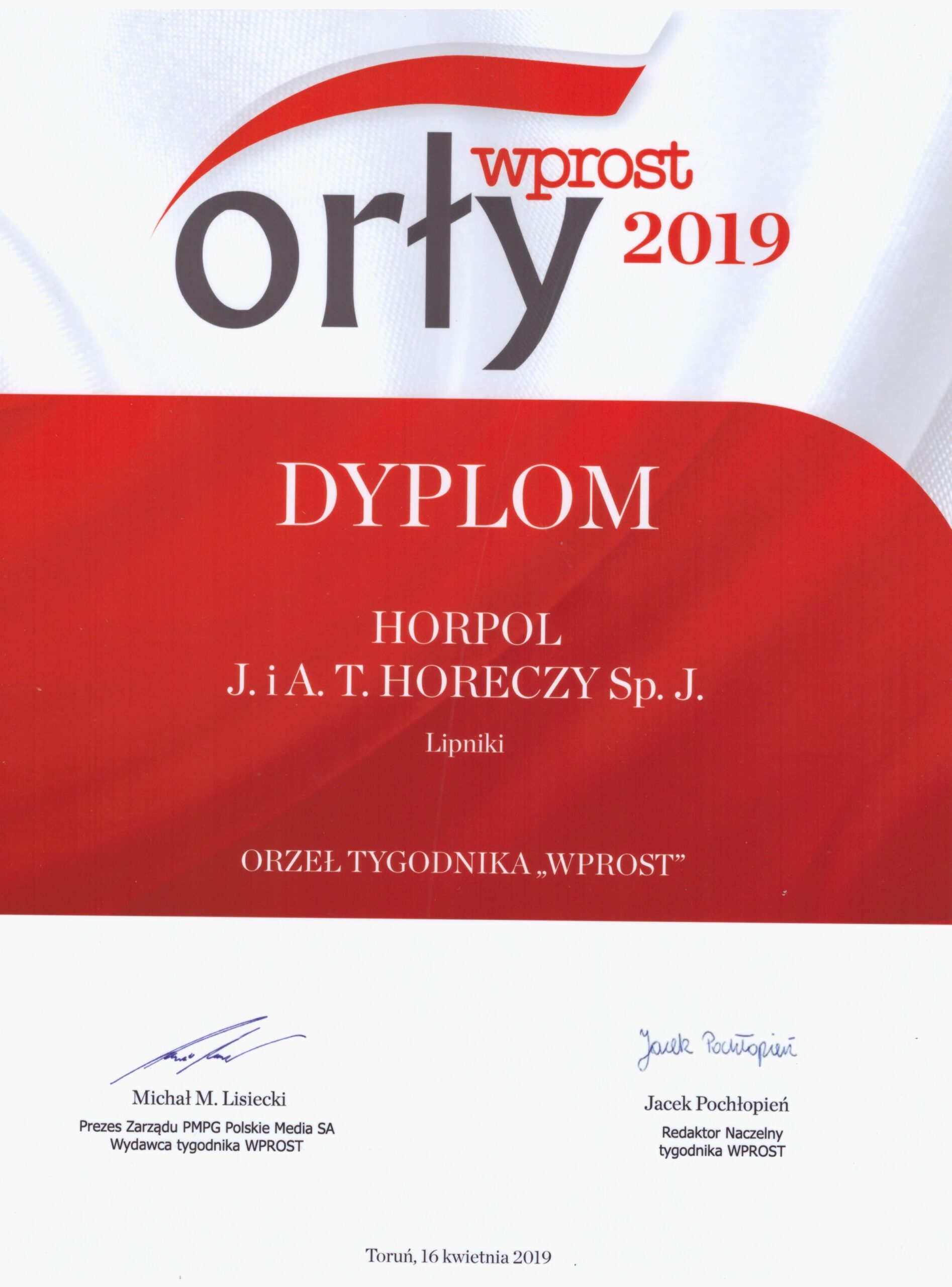 W ostatnich latach firma Horpol dynamicznie rozwinęła się, co pozwoliło znacząco zwiększyć jakość produktów i obsługi klientów. Potwierdzeniem tego są liczne wyróżnienia i prestiżowe nagrody, które uzyskaliśmy w ramach rankingu miesięcznika Forbes, tygodnika Wprost czy dziennika Puls Biznesu. Od kilku lat przynależymy także do elitarnego klubu Gazel Biznesu. Zachęcamy do sprawdzenia dyplomów, aby przekonać się o naszych osiągnięciach!