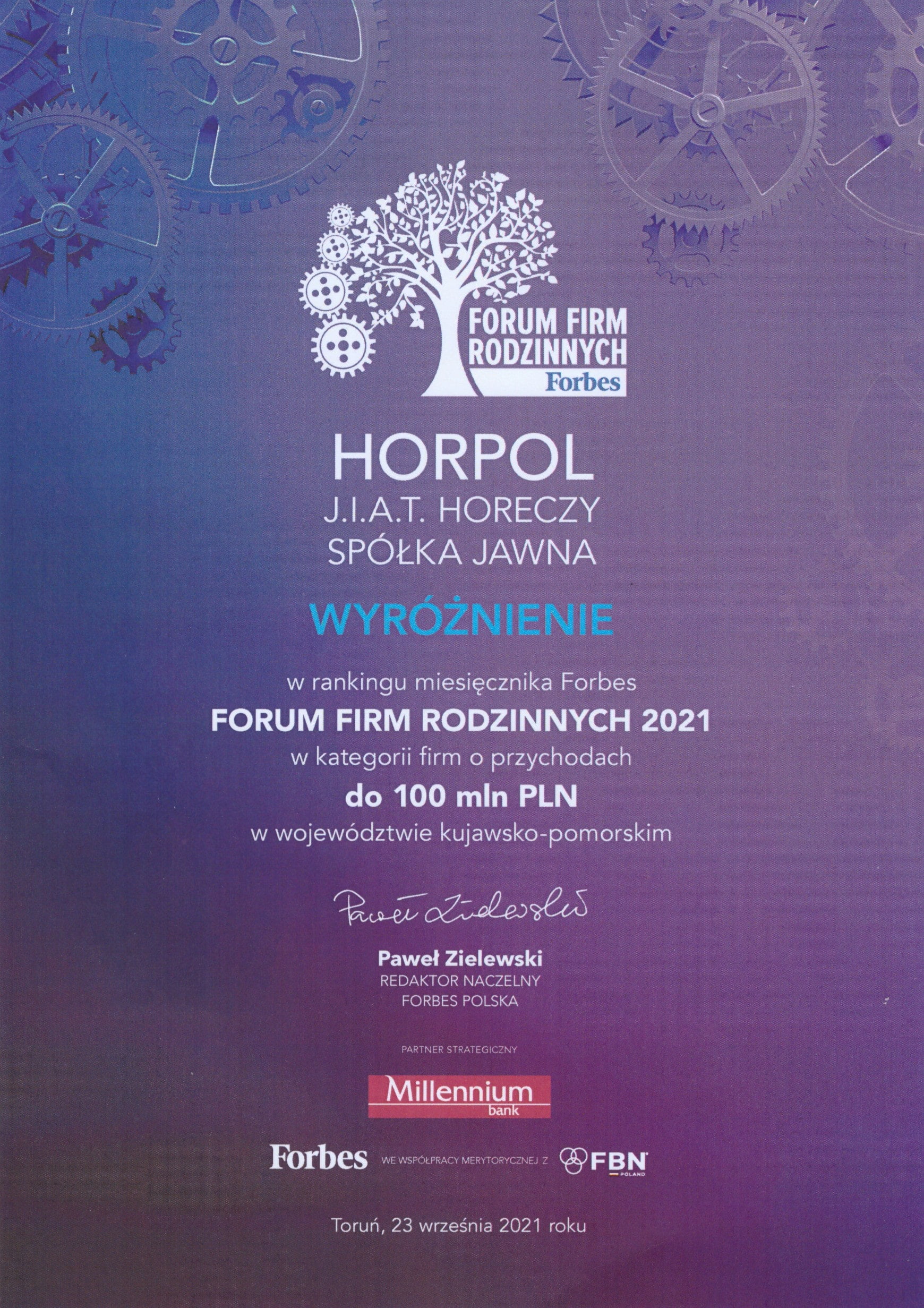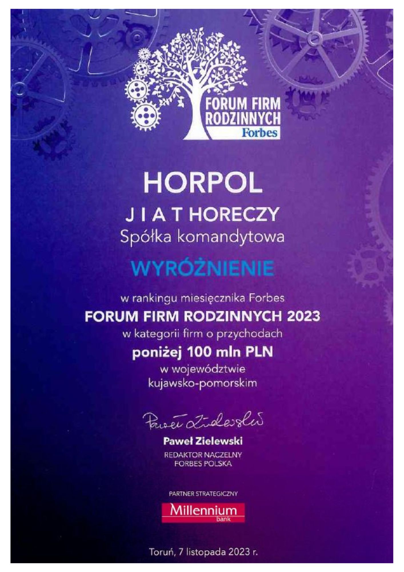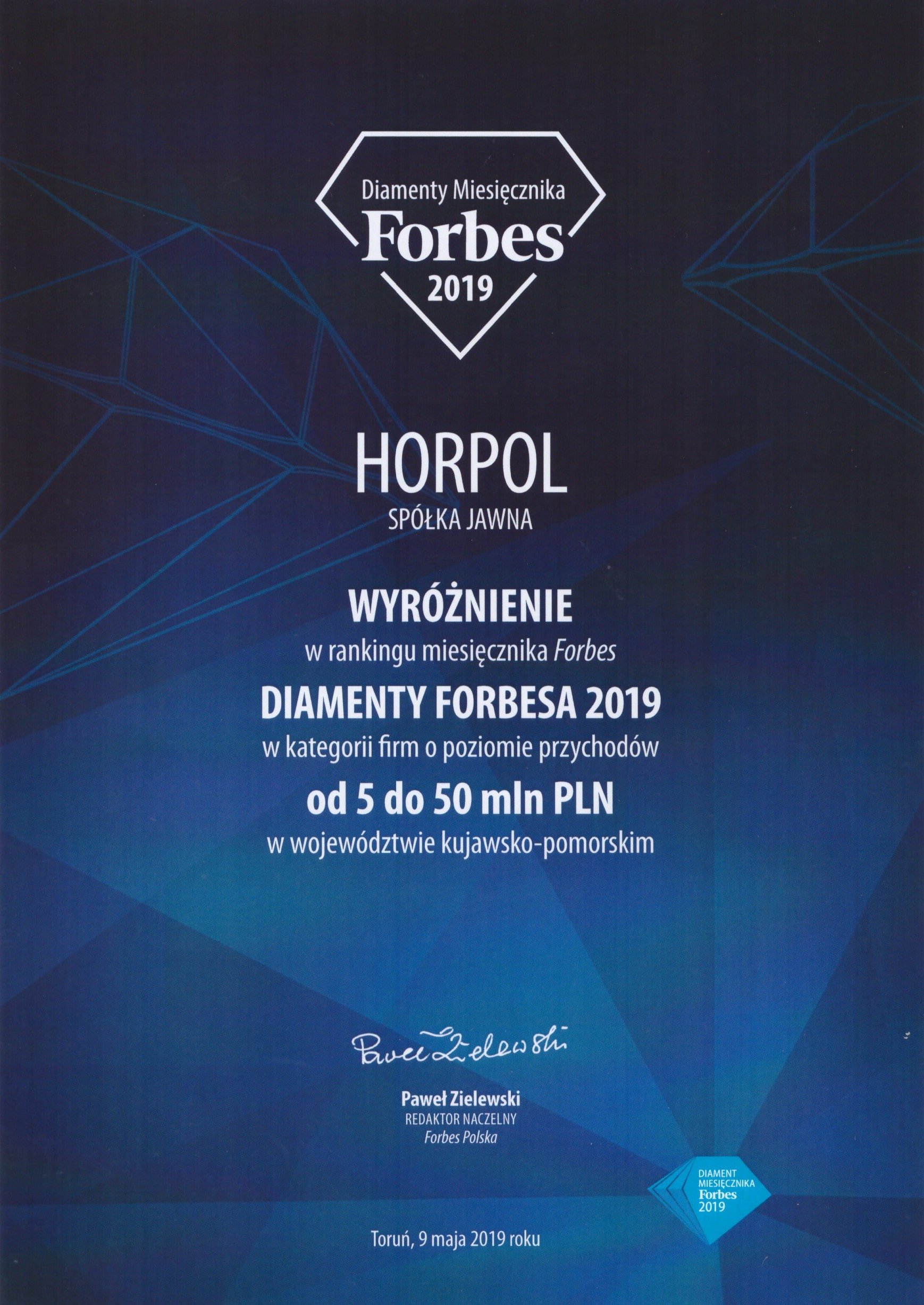 W ostatnich latach firma Horpol dynamicznie rozwinęła się, co pozwoliło znacząco zwiększyć jakość produktów i obsługi klientów. Potwierdzeniem tego są liczne wyróżnienia i prestiżowe nagrody, które uzyskaliśmy w ramach rankingu miesięcznika Forbes, tygodnika Wprost czy dziennika Puls Biznesu. Od kilku lat przynależymy także do elitarnego klubu Gazel Biznesu. Zachęcamy do sprawdzenia dyplomów, aby przekonać się o naszych osiągnięciach!