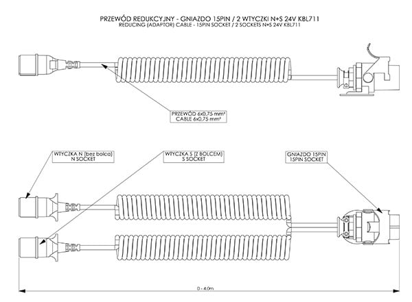 Przewód spiralny, redukcyjy- 4,0m, wtyczka 15PIN, 2 wtyczkiOBTRYSK