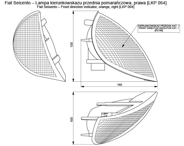 Fiat Seicento – Lampa kierunkowskazu przednia pomarańczowa Typ lampy: