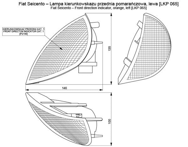 Fiat Seicento – Lampa kierunkowskazu przednia pomarańczowa Typ lampy: