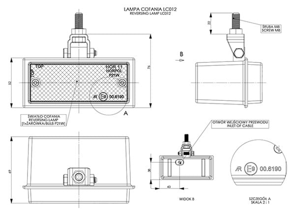 Lampa cofania uniwersalna – podwieszana