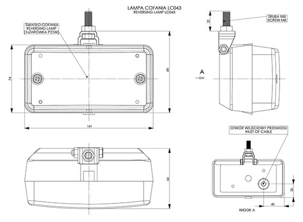 Lampa cofania uniwersalna II – podwieszana, bez kabla