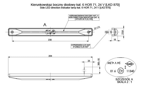 Kierunkowskaz boczny diodowy kat. 6 HOR 71, 24 V