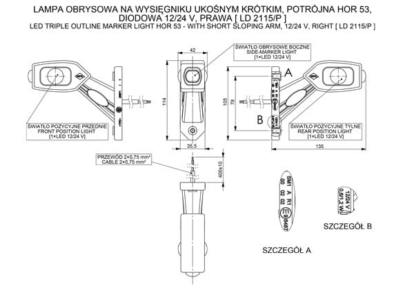 Lampa obrysowa na wysięgniku ukośnym krótkim, potrójna