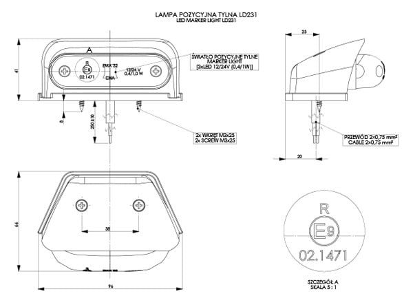 Lampa obrysowa owalna w wersji narożnej, czerwona