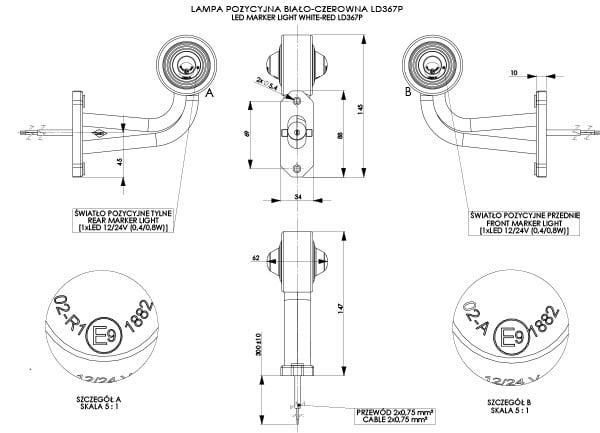 Lampa obrysowa na wysięgniku łamanym krótkim.