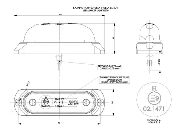 Lampa obrysowa owalna czerwona z podkładką gumową