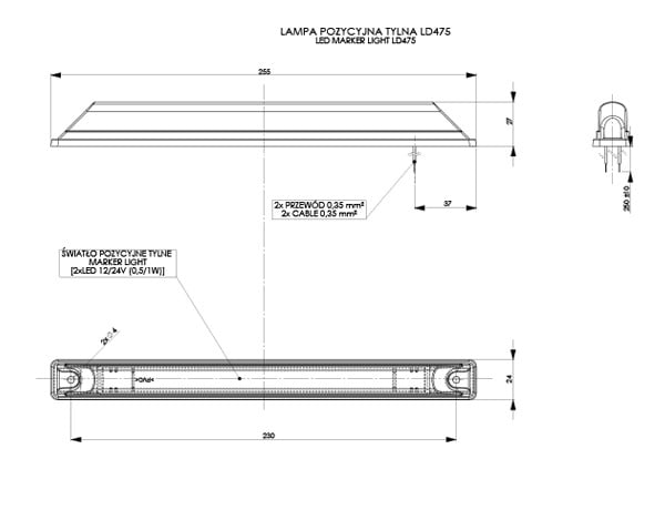 Lampa pozycyjna długa czerwona (bezbarwny klosz).
