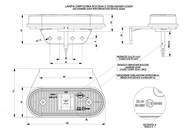 Lampa obrysowa z odblaskiem, wisząca, pomarańczowa.