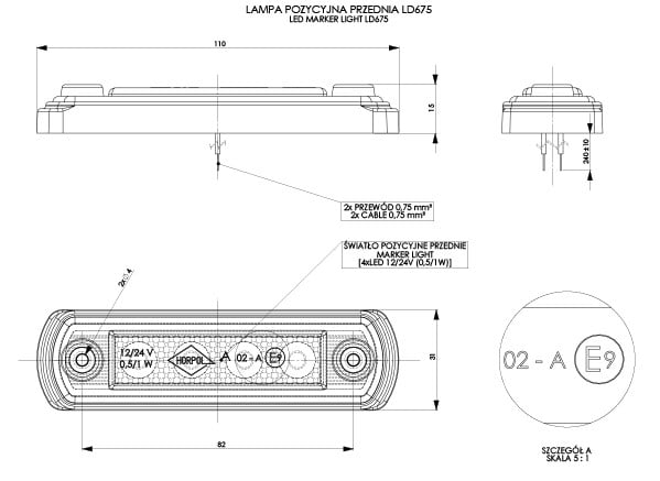 Lampa obrysowa na podstawie gumowej prostej, biała