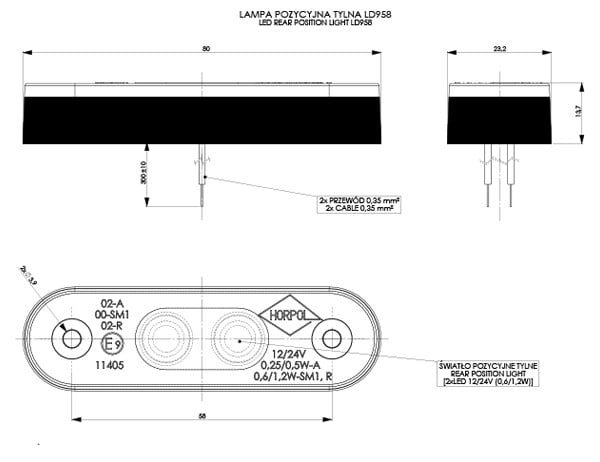 Lampa pozycyjna HOR 72, czerwona z podkładkami niską i wysoką, diodowa 12/24V.