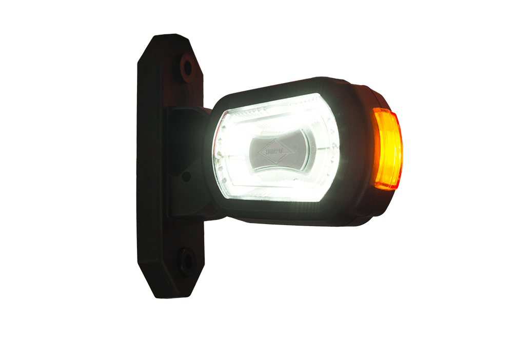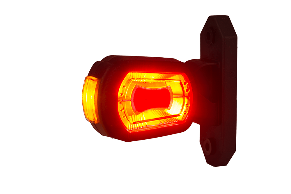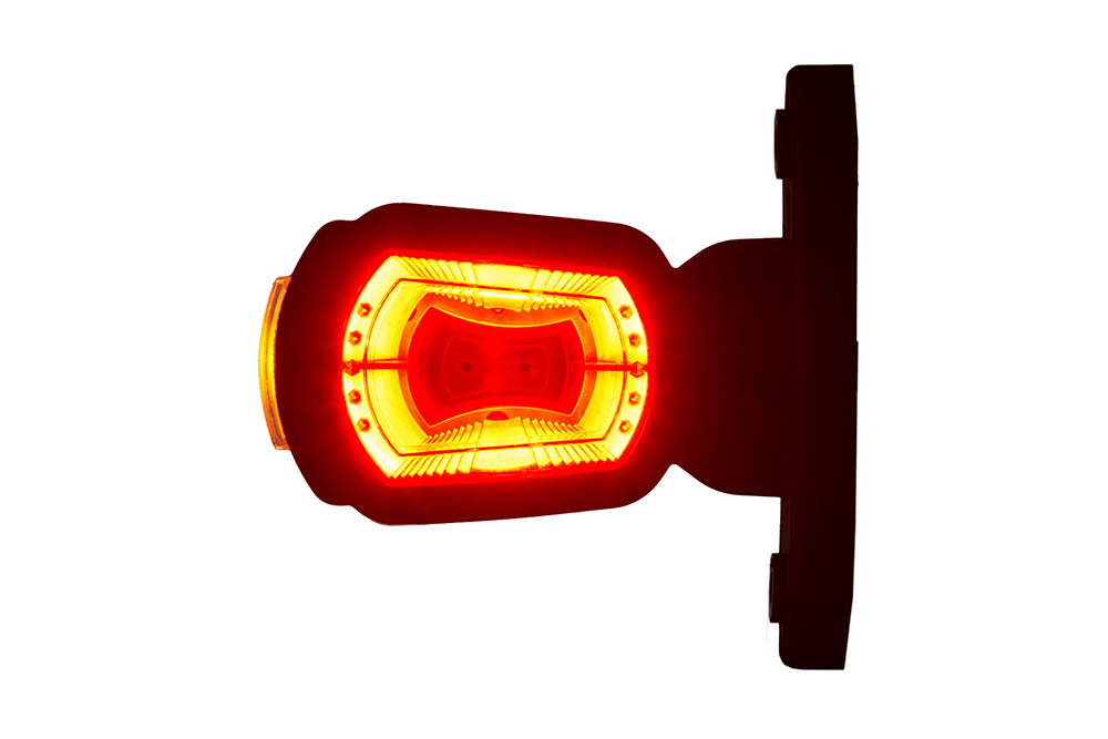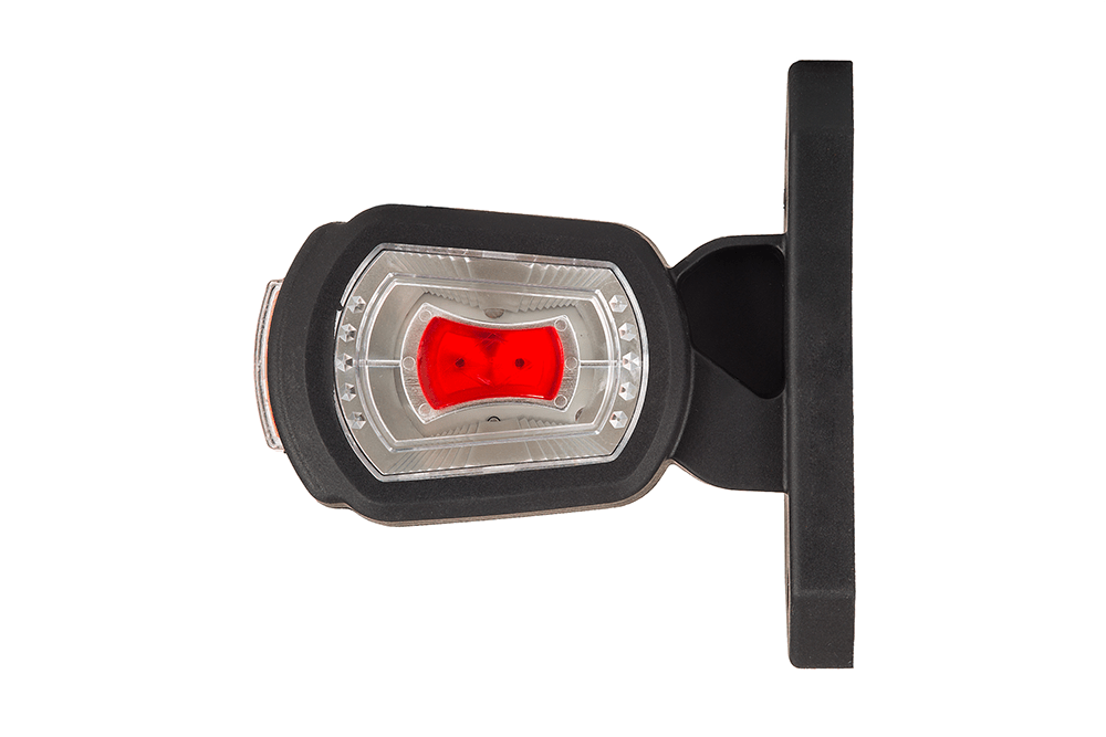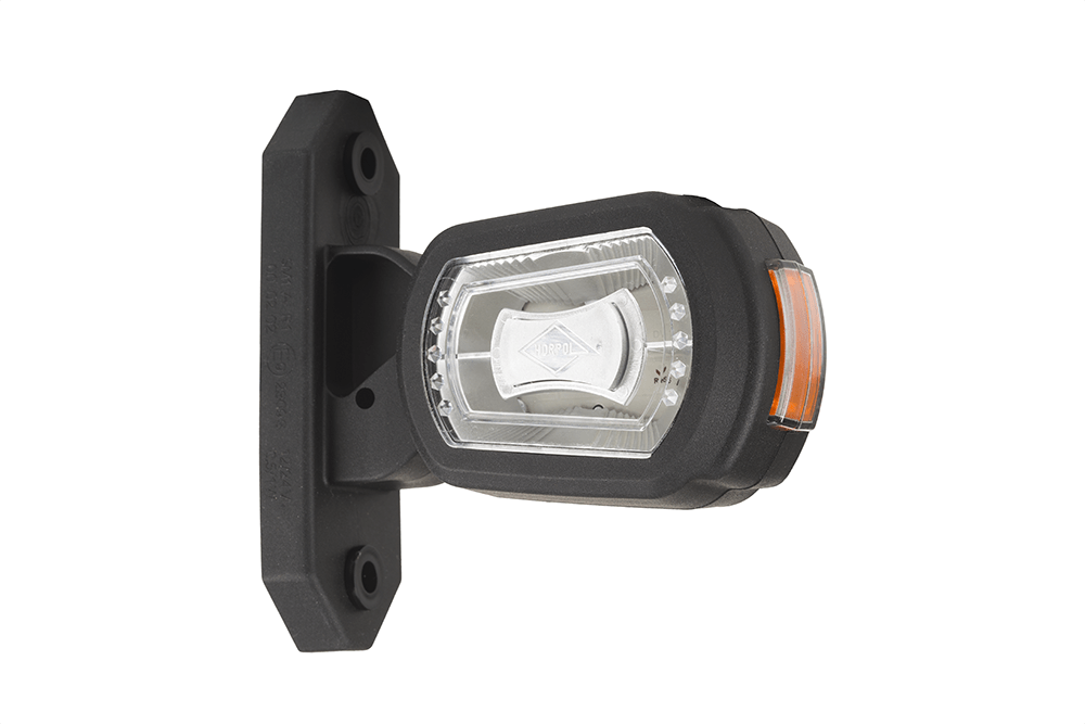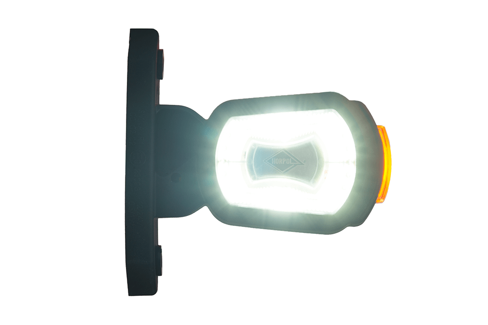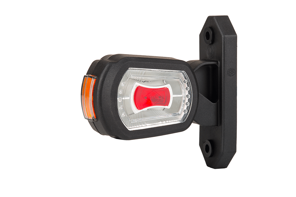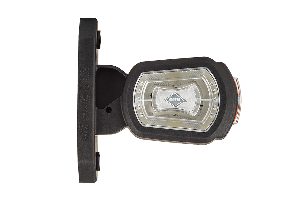 Lampa obrysowa trzyfunkcyjna na wysięgniku krótkim prostym HOR 101, kompatybilna z czujnikiem cofania, diodowa 12/24 V, lewa (okrągły przewód 2×0,75 mm2, długość 0,3 m).