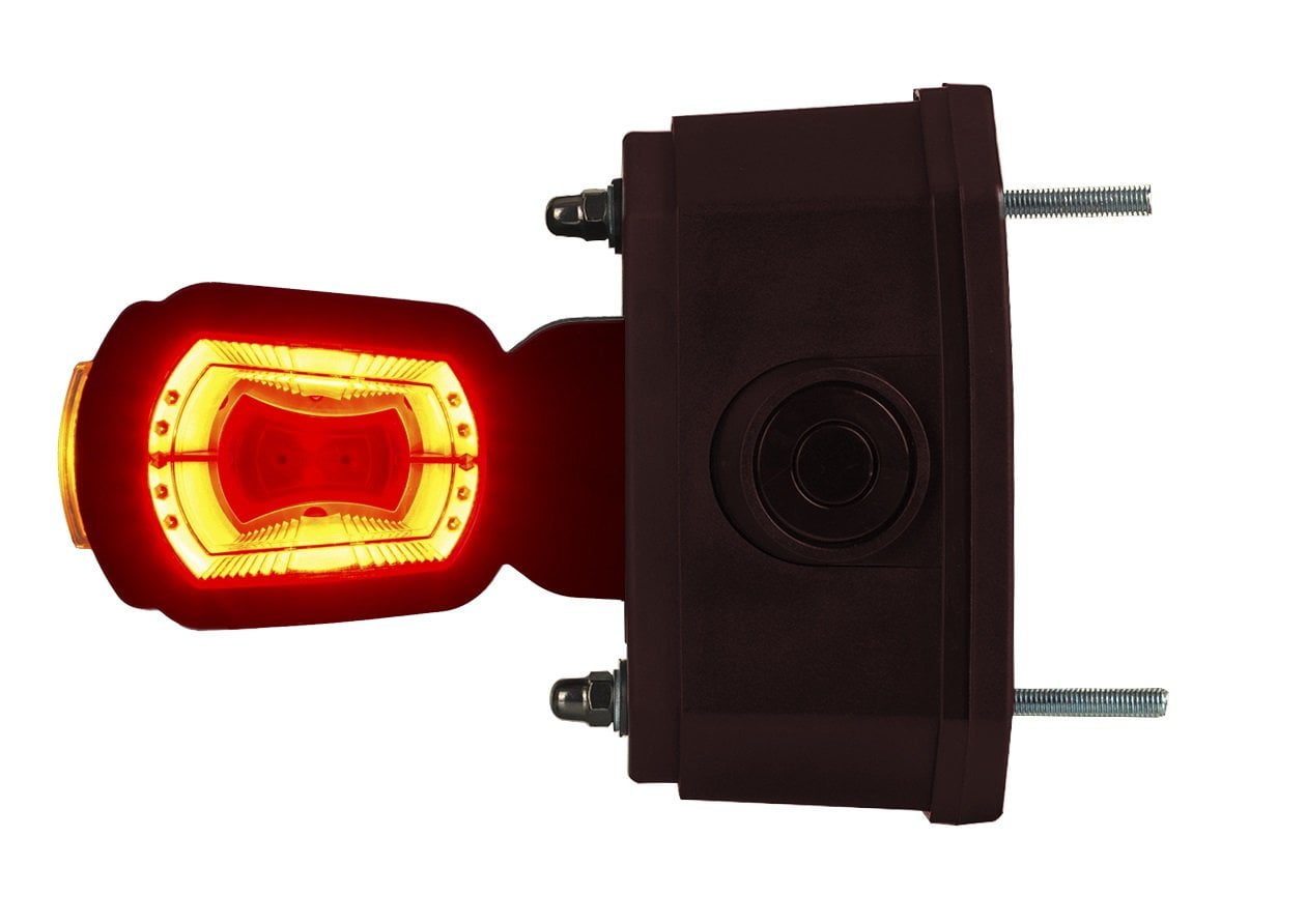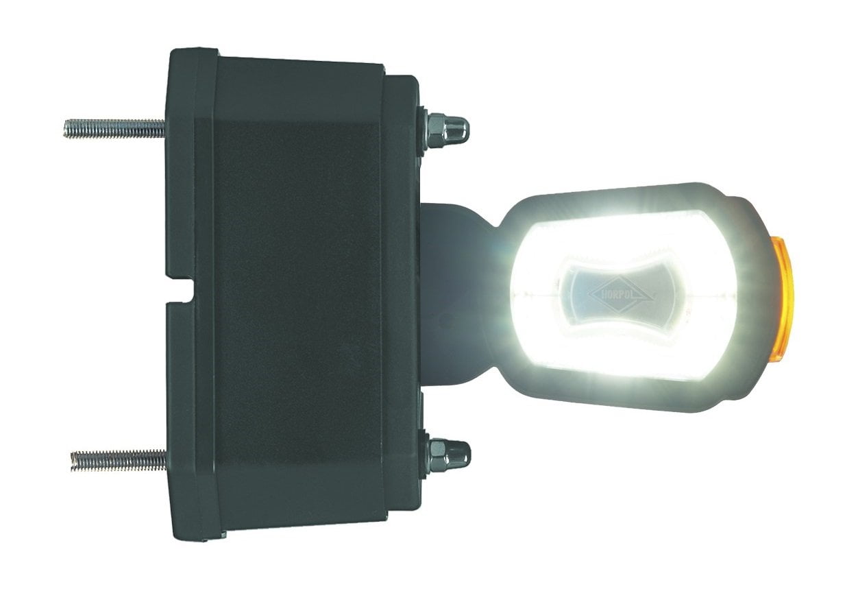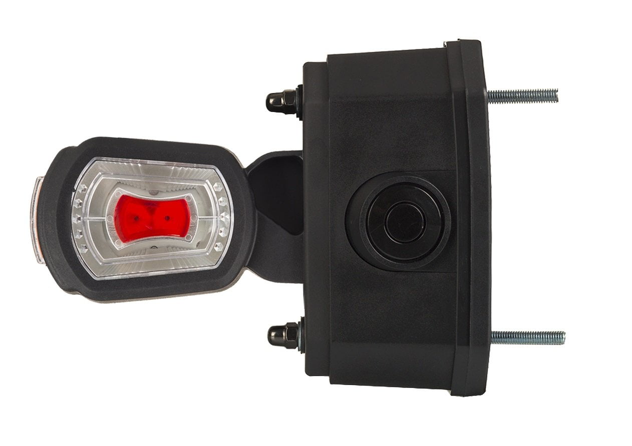 Lampa obrysowa trzyfunkcyjna na wysięgniku krótkim prostym HOR 101, z modułem czujnika cofania, diodowa 12/24 V, lewa (okrągły przewód 3×0,5 mm2, długość 1,5 m).