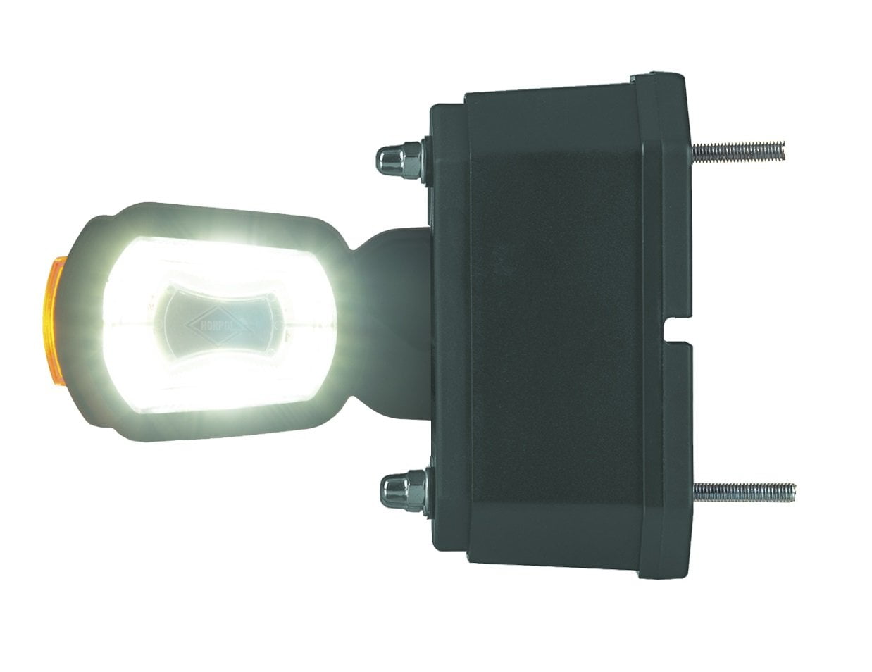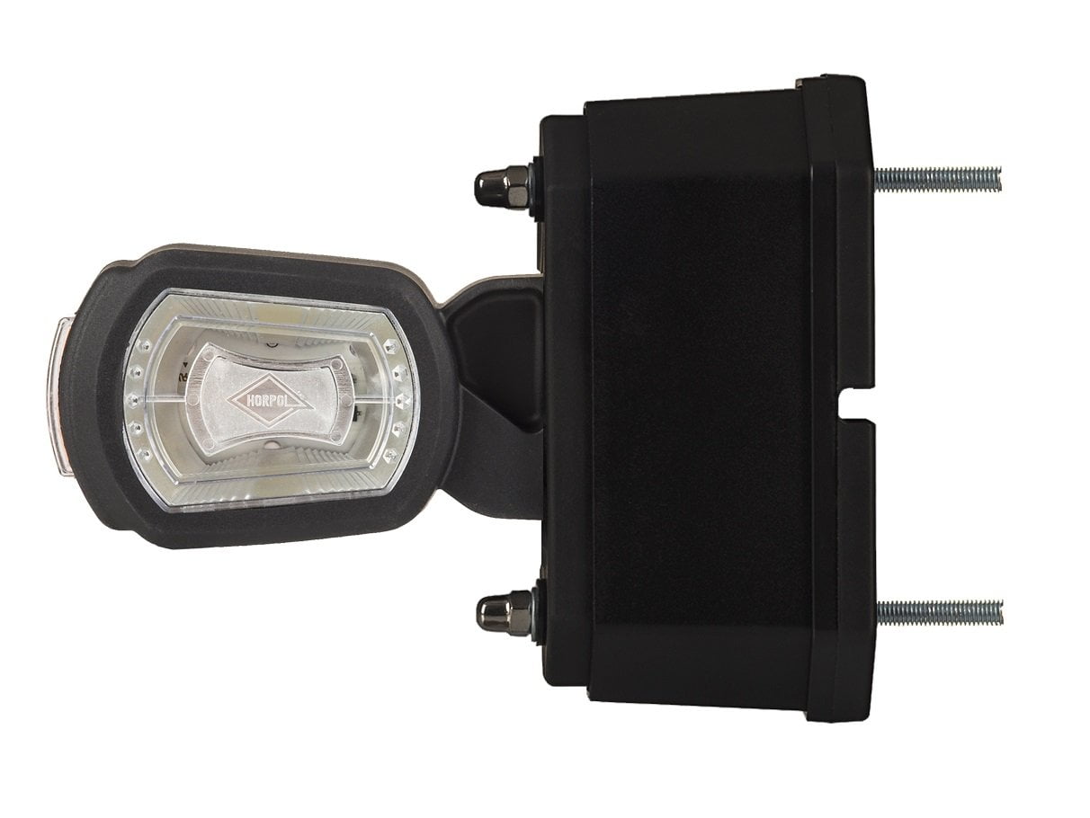 Lampa obrysowa trzyfunkcyjna na wysięgniku krótkim prostym HOR 101, z modułem czujnika cofania, diodowa 12/24 V, prawa (okrągły przewód 3×0,5 mm2, długość 1,5 m)