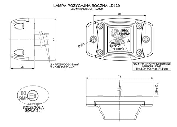 Lampa obrysowa na podstawie gumowej, czerwona.