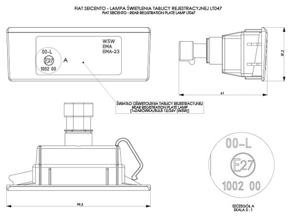 lampa oświetlenia tablicy rejestracyjnej Fiat Seicento