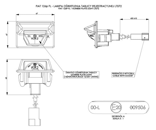 lampy oświetlenia tablicy rejestracyjnej Fiat 126p FL