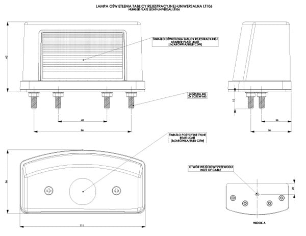 lampa oświetlenia tablicy rejestracyjnej, uniwersalna czerwona