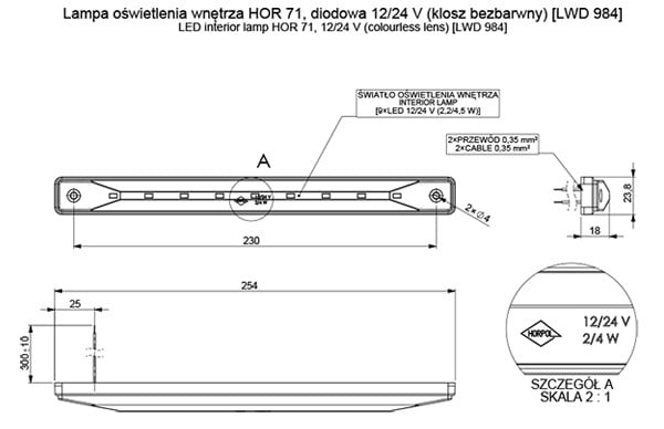 Lampa oświetlenia wnętrza HOR 71 12/24 V (klosz bezbarwny].