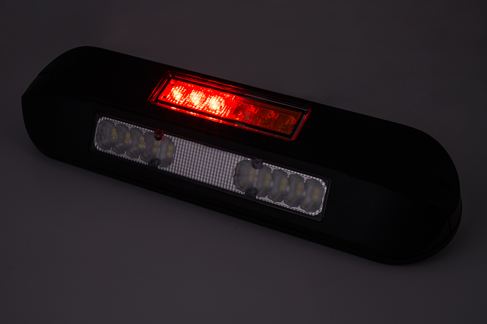– Wbudowana w korpusie lampa zespolona zapewnia trzy funkcje świetlne: pozycyjne, hamowania oraz kierunkowskazu.