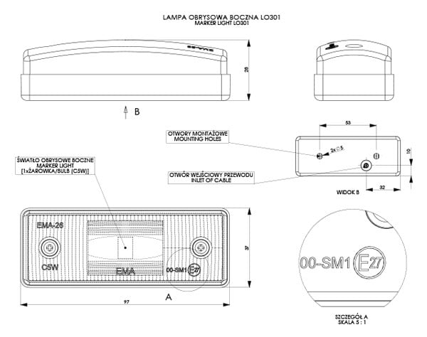 Światło obrysowe boczne
