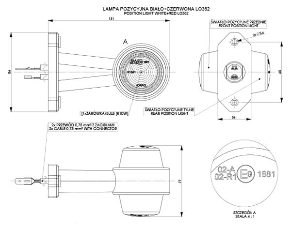 Lampa obrysowa biała+czerwona na wysięgniku długim Dostępne kolory: