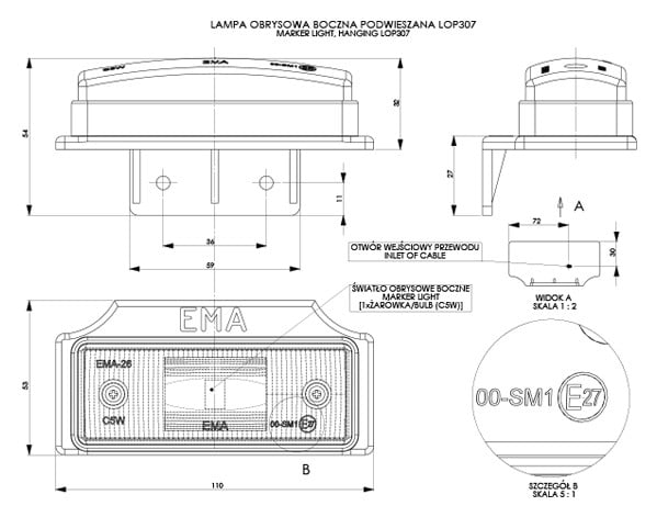Lampa obrysowa płaska II – podwieszana, pomarańczowa