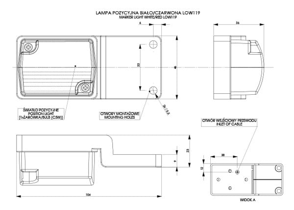 Lampa obrysowa prostokątna – mała, wisząca, biało/czerwona Dostępne kolory: