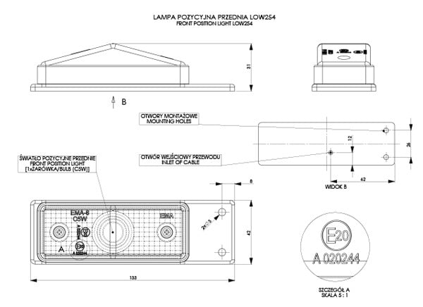 Lampa obrysowa płaska, wisząca, biała Dostępne kolory: