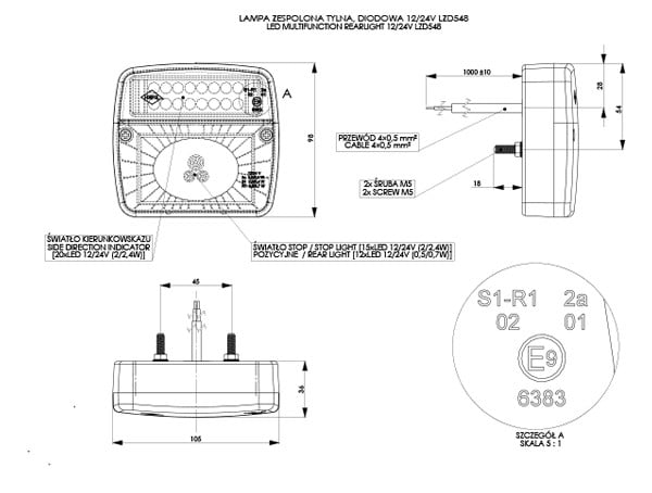 Lampa zespolona tylna HOR 58, diodowa 12/24V.