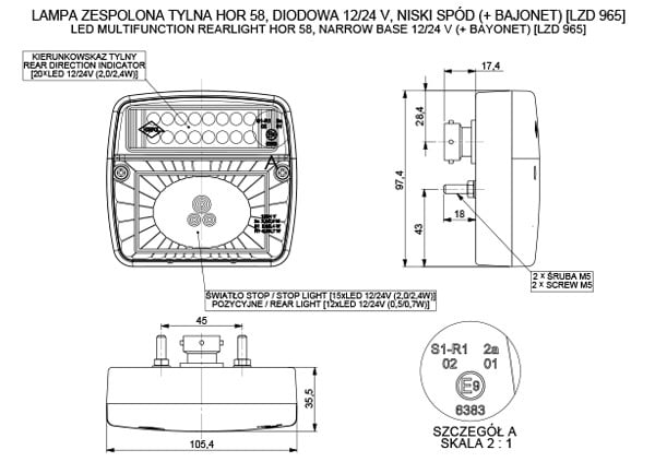 Lampa zespolona tylna HOR 58 z bajonetem 5 PIN