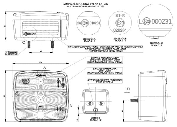 Lampa zespolona przyczepy z oświetleniem tablicy rejestracyjnej
