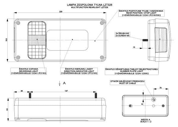 Lampa zespolona tylna z białym kierunkowskazem i światłem cofania, prawa