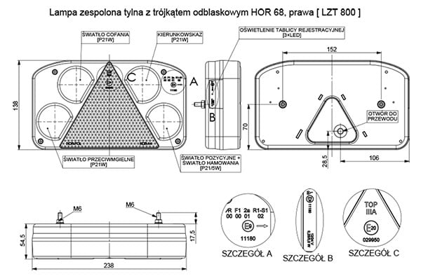 Lampa zespolona tylna z trójkątem odblaskowym HOR 68, prawa