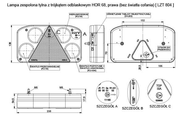 Lampa zespolona tylna z trójkątem odblaskowym HOR 68, prawa