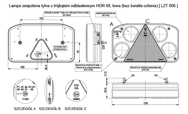 Lampa zespolona tylna z trójkątem odblaskowym HOR 68, lewa (bez światła cofania)