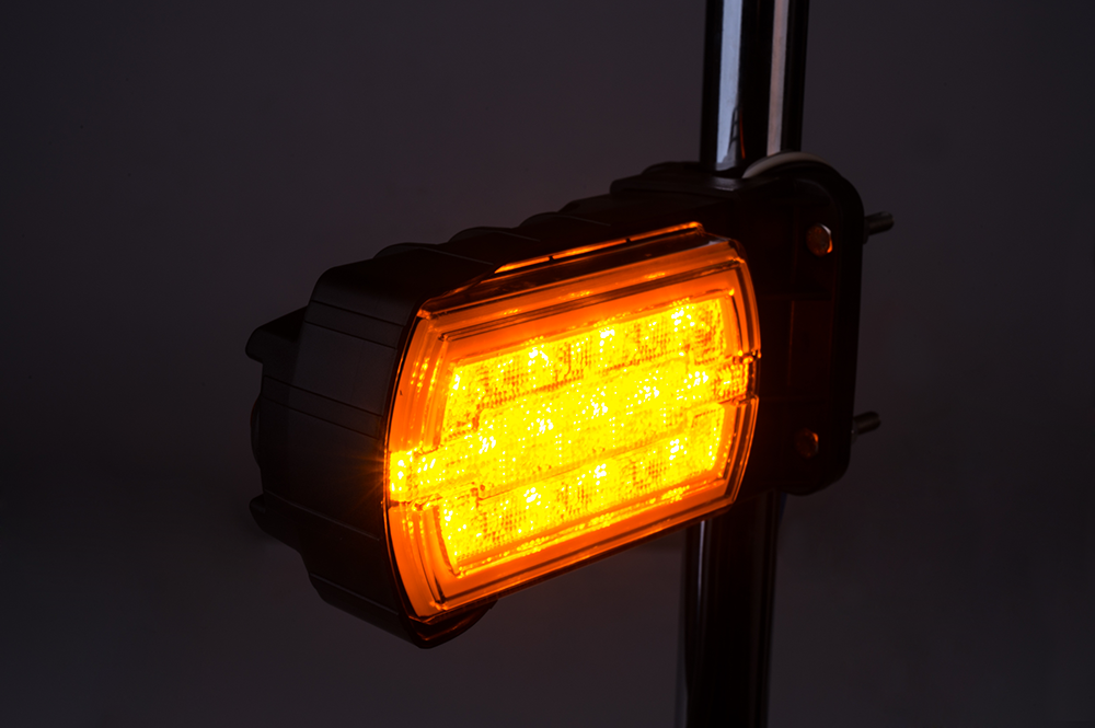 Lampa LZD 2789/R2 z mocowaniem na rurę ø20÷30 mm jest uniwersalna montażowo, można instalować ją zarówno po lewej, jak i po prawej stronie pojazdu, w pionie oraz w poziomie. Lampa wyposażona w funkcje świateł: przednie światło pozycyjne z efektem NEON oraz przedni kierunkowskaz.
