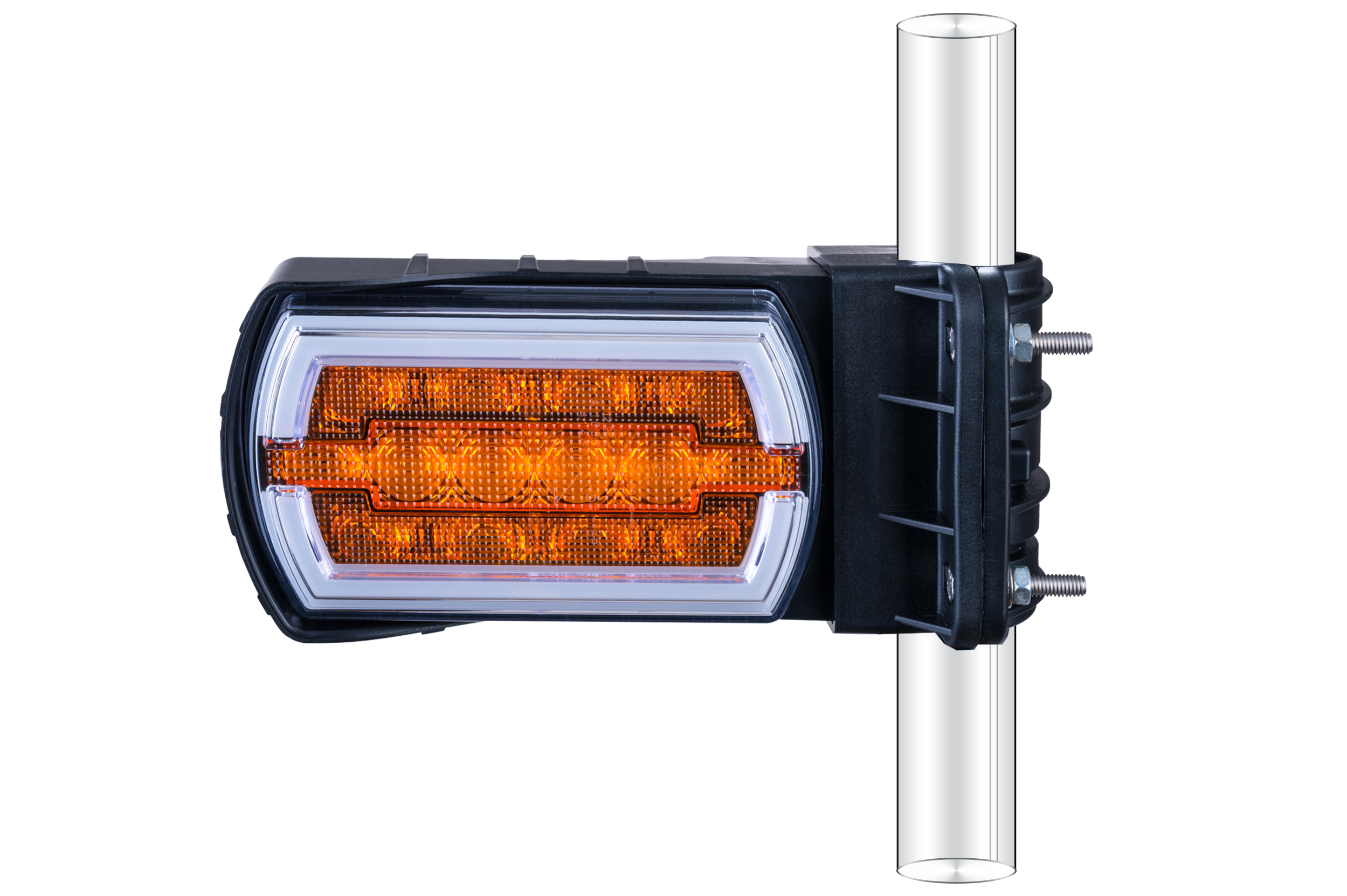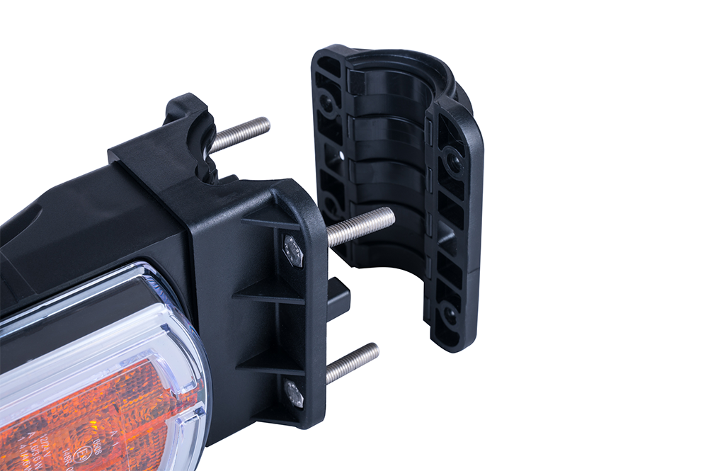 Lampa LZD 2789/R1 z mocowaniem na rurę ø20÷30 mm jest uniwersalna montażowo, można instalować ją zarówno po lewej, jak i po prawej stronie pojazdu, w pionie oraz w poziomie. Lampa wyposażona w funkcje świateł: przednie światło pozycyjne z efektem NEON oraz przedni i boczny kierunkowskazy.