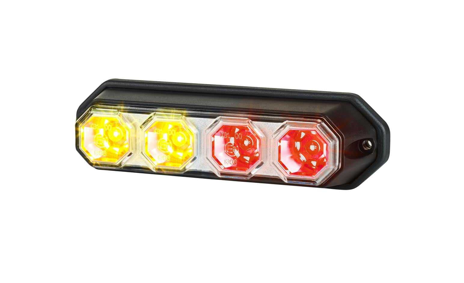 Trzyfunkcyjna lampa zespolona tylna: światło hamowania, pozycyjne i kierunkowskaz. Lampa wyposażona jest w 4 LED: 2 czerwone i 2 pomarańczowe.
