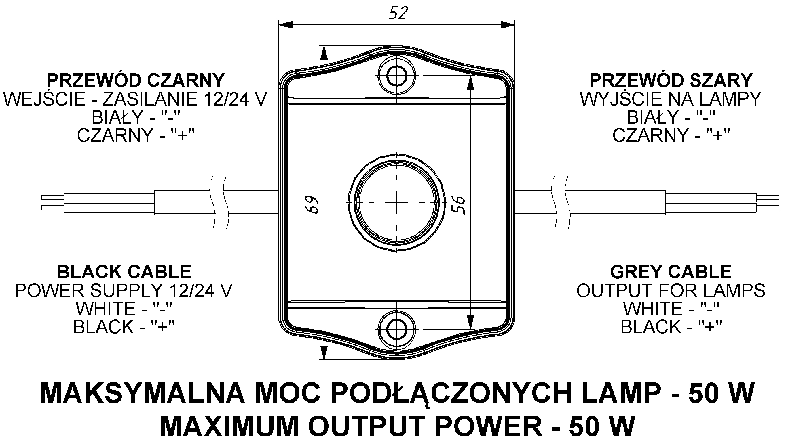 szary – wyjście na lampy (żyła biała – „-„, żyła czarna „+”)