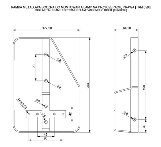 Ramka boczna do montowania lamp na przyczepach, prawa: