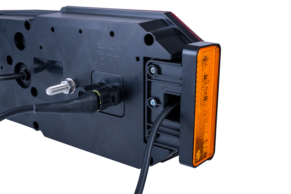 Dzięki podwójnemu gniazdu Superseal w korpusie lampy zespolonej istnieje możliwość prostego podłączenia zintegrowanej lampy pozycyjnej bocznej oraz oświetlenia tablicy rejestracyjnej w pojeździe lub wiązki zasilającej lampy obrysowe.