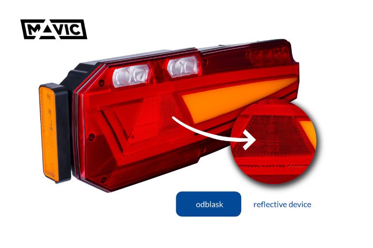 W naszej ofercie posiadamy również lampy zespolone MAVIC z trójkątem odblaskowym i lampą obrysową LZD 3049/H93 (lewa), LZD 3050/H93 (prawa).